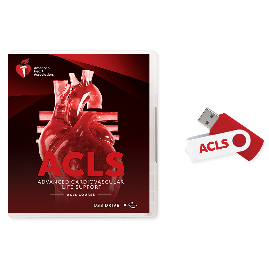 The ACLS Provider Course Videos on USB features the same content as the ACLS Provider Course DVD Set and ACLS Provider Course Digital Videos. The convenient USB digital format includes the required video segments for the classroom-based and blended learning options of the ACLS Provider Course. The USB allows Instructors to access course videos with the USB and does not require an internet connection.